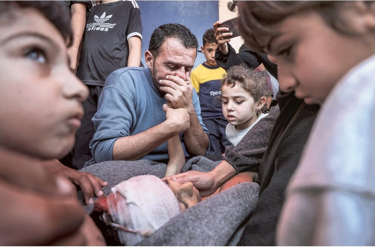 Lost innocence: A grieving relative holds a child killed in an Israeli bombing.