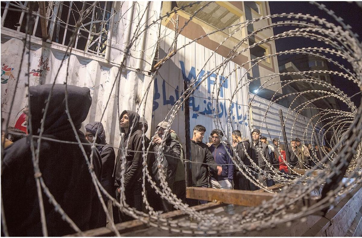 Waiting for aid: Palestinians wait at a World Food Programme distribution centre in Jabalya refugee camp, on February 6.