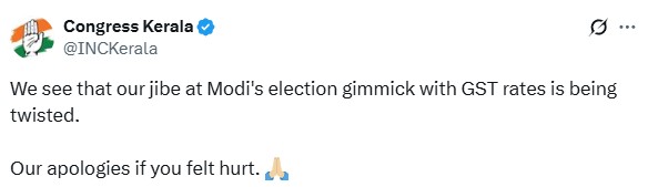 The Kerala unit of the Congress on Friday issued an apology after the Bharatiya Janata Party slammed it for drawing parallels between the state of Bihar and bidis (thin cigarettes or mini-cigars filled with tobacco flake), and criticised the proposed GST rate changes on the same.