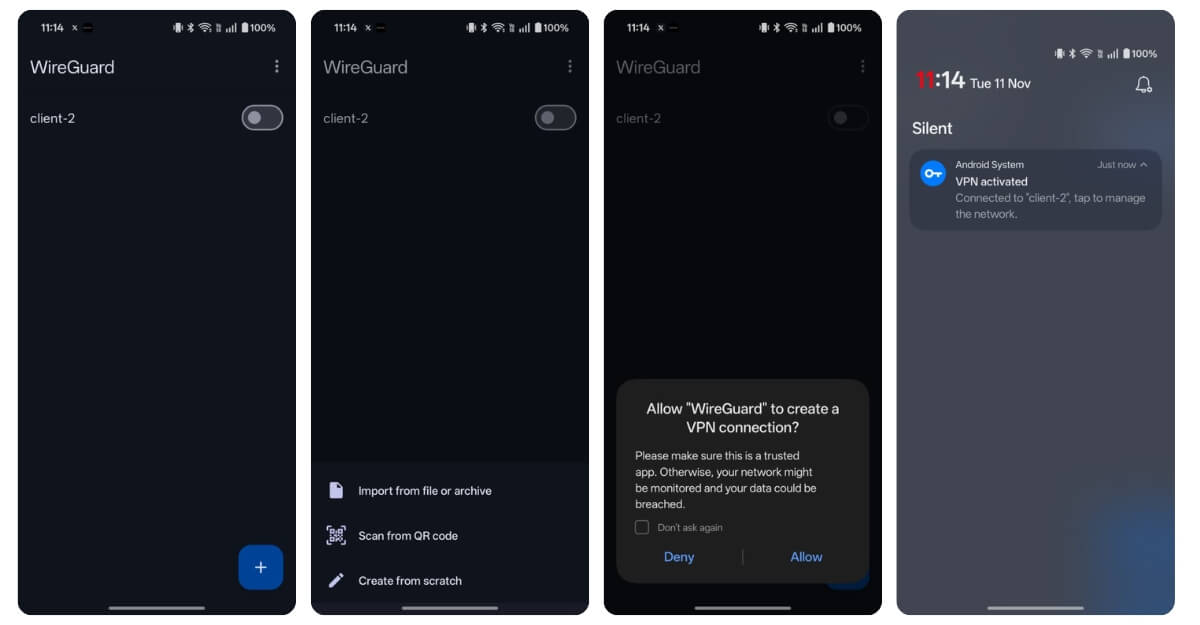 Once the setup is complete, you can connect other devices, such as your phone or laptop, as clients to the device on which you installed the VPN server.