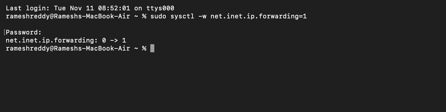 - Once you have created the config file, you need to enable IP forwarding. To do this, use the following command: