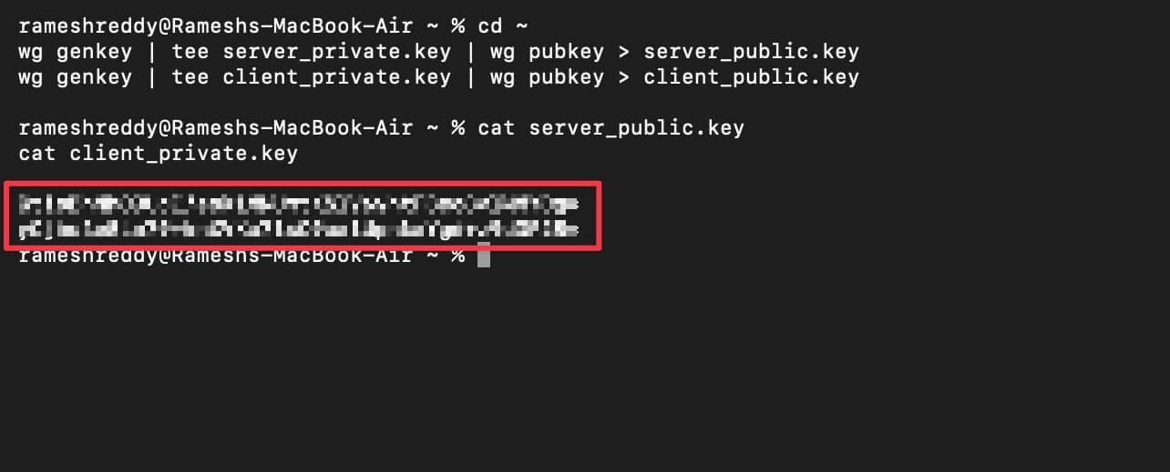 wg genkey | tee server_private.key | wg pubkey > server_public.key