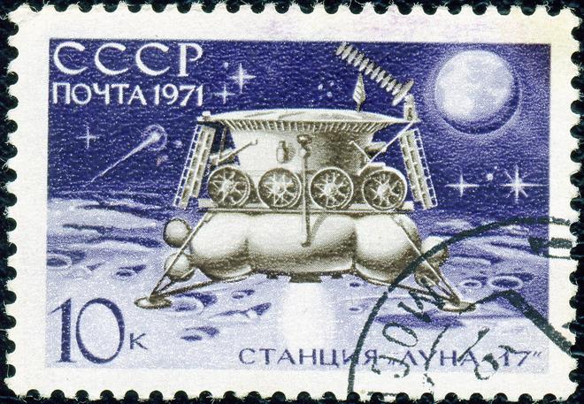 1971 Soviet postage stamp commemorates the spacecraft that delivered the world’s first successful planetary rover to the Moon