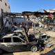 One video widely circulated on social media shows dozens of people crowded around the area of the strike, which appears to be just next to a building.